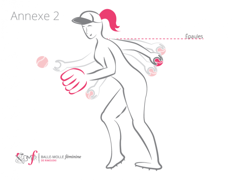 La hauteur du bras permise pour commencer un lancer est au niveau des épaules suivi d’un mouvement de 180° vers l’avant. Voir annexe 2